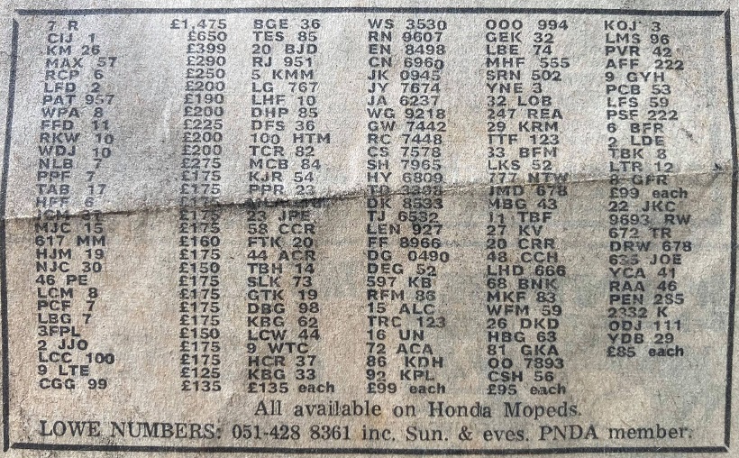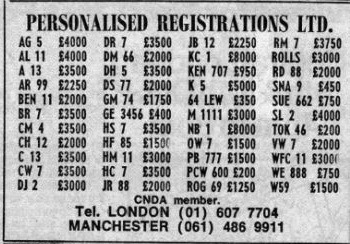 An ad from Car Numbers magazine from June 1988 and has 4 R advertised for £15,950