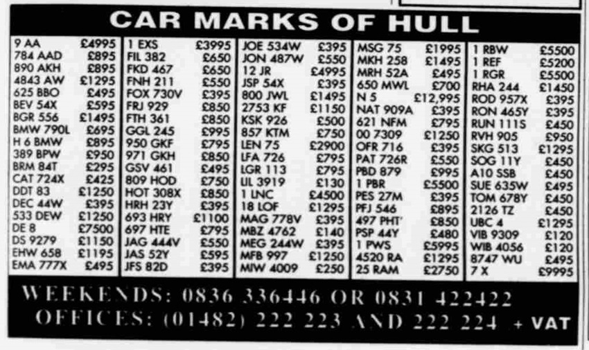 An ad from Car Numbers magazine June 1994 with B 9 for £13K