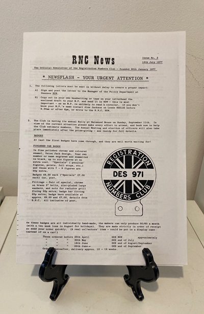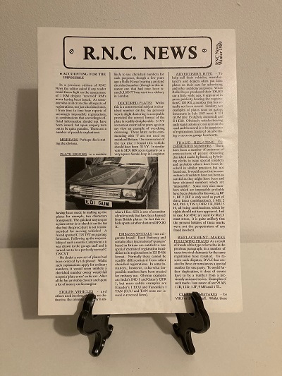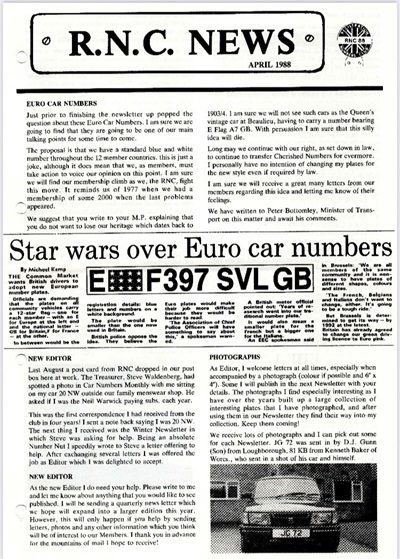 IV - RNC (Registration Numbers Club) Newsletter